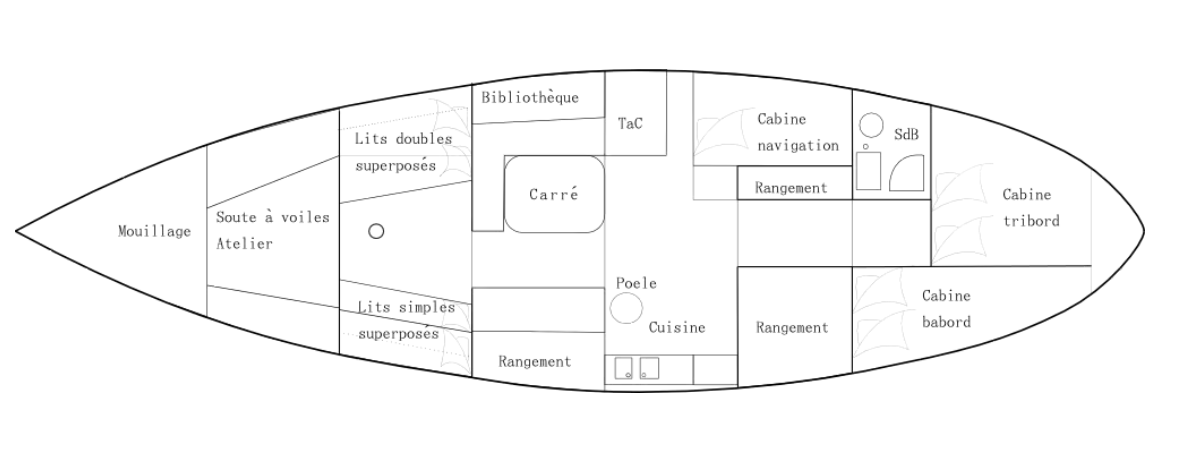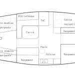 Spacieux et volumineux, il peut d’accueillir confortablement 7 personnes sur de longues périodes. Les espaces intérieurs sont composés de l’arrière à l’avant :
